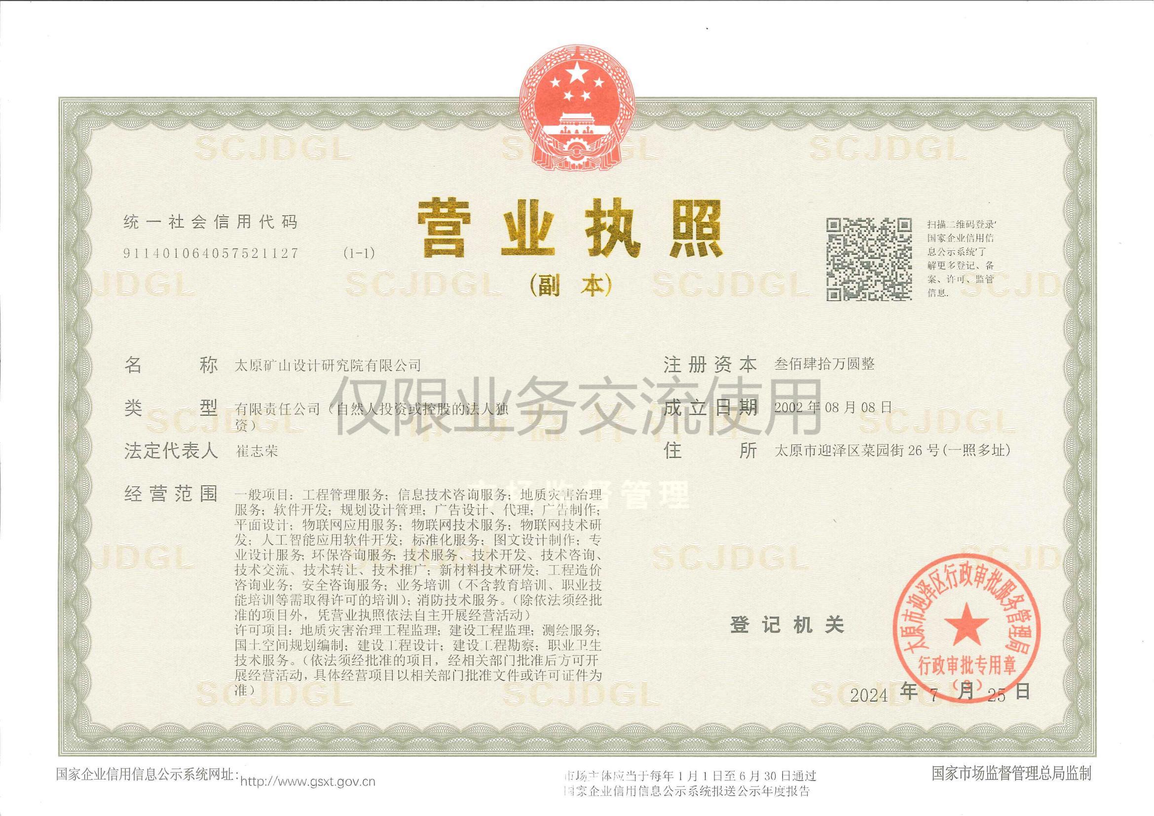 公司主要從事礦山采選尾工程設計、智能化及自動化礦山、建設綠色礦山、工程技術咨詢、規(guī)劃設計管理、施工勞務分包、土地規(guī)劃、地質災害治理服務、安全生產技術服務、軟件開發(fā)及測繪服務;煤礦、非煤礦山設計;煤礦、非煤礦山、危險化學品安全評價(業務范圍:煤炭開采業;金屬、非金屬及其他礦采選業;石油加工業,化學原料、化學品及醫(yī)藥制造業);非煤礦山、冶金等工商貿企業、危險化學品從業單位安全生產標準化評審;公共場所衛(wèi)生、生活飲用水、公共場所集中中央空調通風系統的檢驗、檢測、評價;職業健康檢測檢驗;建設項目職業病危害評價、職業危害因素檢測與評價;安責險技術服務;業務培訓等工作。